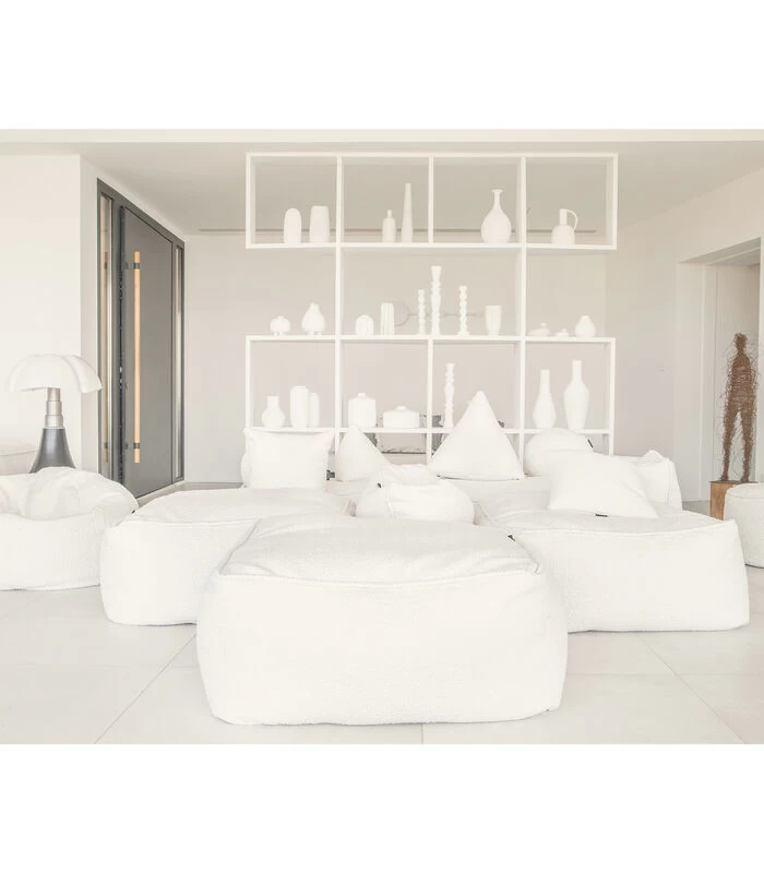 6 modulaire poefs geven je de vrijheid om de combinatie van je dromen te bouwen en zijn gemakkelijk te verplaatsen en aan te passen als je behoeften veranderen. Styrofoam balvulling. Een collectie die u warm zal houden met deze ecruwitte bouclette stof di]]bineert met een valse gebreide look voor een bij uitstek cocooning effect. Deze zachte collectie is een uitnodiging om te ontspannen en past perfect in uw interieur.