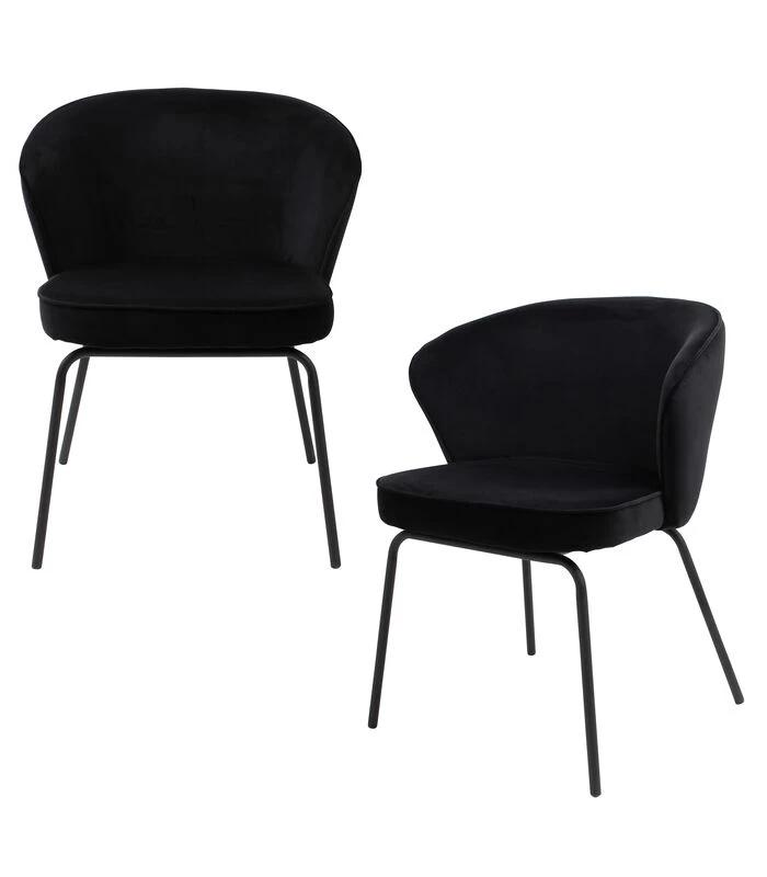 BePureHome Admit Eetkamerstoel – Fluweel – Zwart – Set Van 2