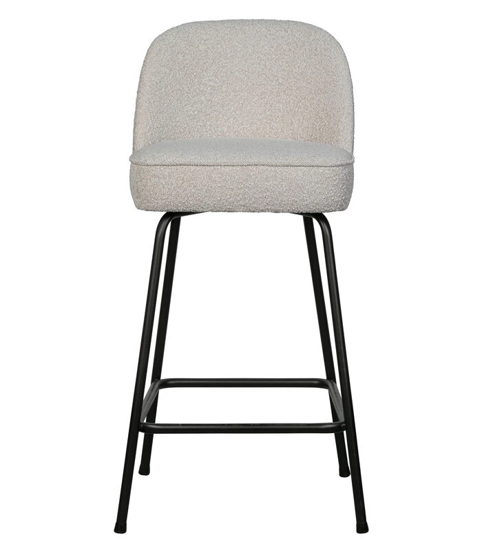 Het materiaal van de Colmar bouclé stof speelt in op de laatste trend: zachte materialen. De stof is comfortabel en heeft een elegante textuur. Onze Colmar bouclé heeft een Martindale van 100.000, dat betekent dat de stof geschikt is voor intensief gebruik. De dichte weeftechniek zorgt voor de sterkte van de stof, dit maakt dat de bouclé niet snel zal slijten of scheuren. Ook heeft elke kleur een hoge kleurvastheid, maar het is aangeraden om direct zonlicht te vermijden om kleurnuances te voorkomen. Het onderstel van de Vogue barstoel is gemaakt van metaal met een matzwarte poedercoating. Het frame van de zitting is opgebouwd uit een combinatie van spaanplaat en multiplex. De zitting bevat elastische riemen en een T3542 foam wat zorgt voor een iets stevig zitcomfort wat urenlang een comfortabele zitplaats verzorgt. De rugleuning is gevuld met een T2120 foam.