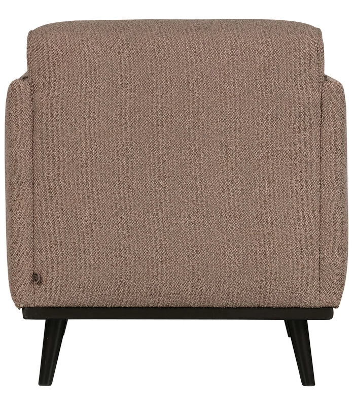 Deze Statement is bekleed met een zachte bouclé van 100% polyester. Het materiaal van de Colmar bouclé stof speelt in op de laatste trend: zachte materialen. De stof is comfortabel en heeft een elegante textuur. Onze Colmar bouclé heeft een Martindale van 100.000, dat betekent dat de stof geschikt is voor intensief gebruik. De dichte weeftechniek zorgt voor de sterkte van de stof, dit maakt dat de bouclé niet snel zal slijten of scheuren. Ook heeft elke kleur een hoge kleurvastheid, maar het is aangeraden om direct zonlicht te vermijden om kleurnuances te voorkomen.