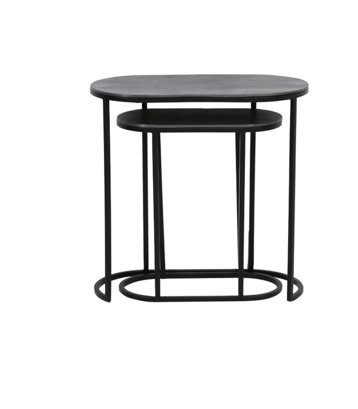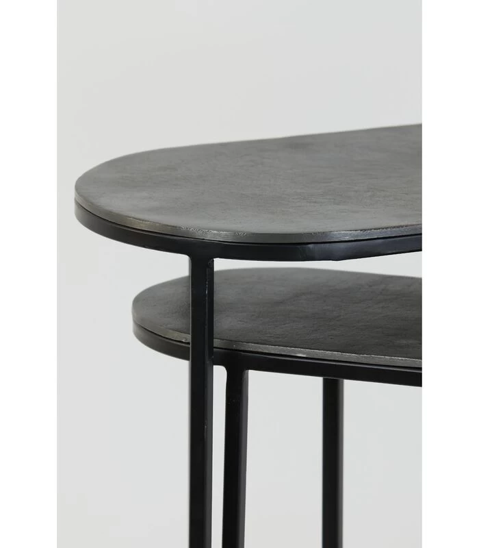 Bijzettafels zijn een musthave in elk interieur. Deze Bocov bijzettafeltjes hebben een antiek loden tafelblad en een zwart onderstel, wat een industrieel effect geeft. Deze tafeltjes komen in een set van twee, waardoor je niet meer hoeft na te denken welke tafeltjes wel of niet bij elkaar passen. De tafels passen onder elkaar waardoor ze niet zo veel ruimte in nemen. Je kan ze natuurlijk ook uit elkaar schuiven, wat zorgt voor een leuk en speels effect. Zet de bijzettafeltjes in de woonkamer bij de bank zodat je lekker je kopje koffie of snacks er op kan zetten. Wij raden wel altijd aan om onderzetters te gebruiken. De tafels hebben een afmeting van maximaal 53x26x53 cm en zijn een product van het Nederlandse merk Light & Living.