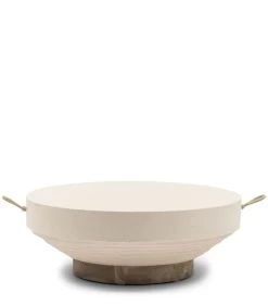 De Jimbaran Outdoor Coffee Table D80 is een lage bijzettafel voor op je terras of in de tuin. De stoere, witte salontafel voor buiten heeft een diameter van maar liefst 80 centimeter en is ook verkrijgbaar in een kleinere variant van 60 centimeter. De ronde tafel is gemaakt van glasvezel en teakhout.