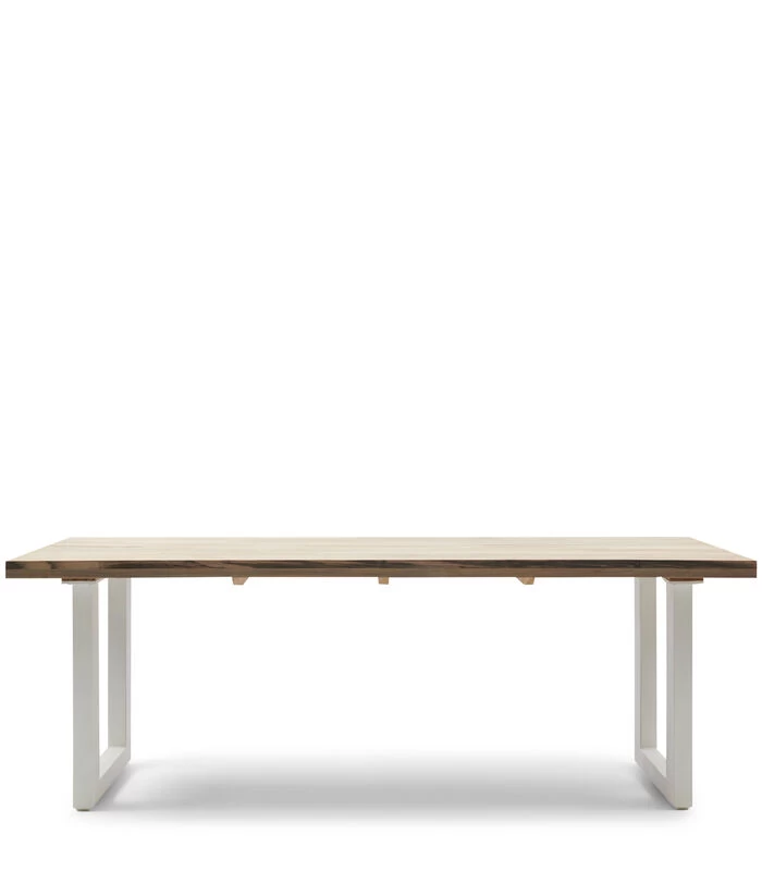Een lange teakhouten tafel in de tuin waaraan iedereen kan aanschuiven voor die heerlijke zomerse maaltijden die uren mogen duren. Familie, vrienden, schuif maar aan en eet maar mee. Handgemaakt door ambachtslieden die vol passie met het hout bezig zijn. Met poten van staal, dat staat stevig. De tafel kunt u met een droge borstel schoonmaken. Vlekken mag u met een vochtige doek weghalen.