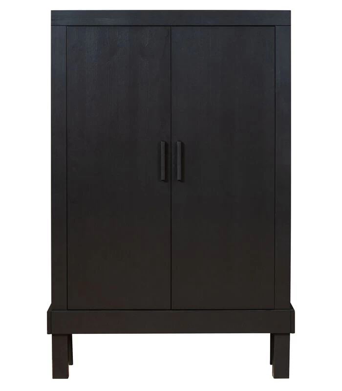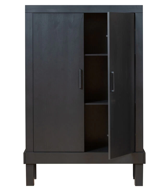 Bonk is een robuuste, stoere dichte kast uit de collectie van het Nederlandse merk Whitelabel. Deze dichte kast is vervaardigd uit grenenhout, FSC gecertificeerd, en heeft een stoere mat zwarte kleur gekregen. Bonk is voorzien van 3 legplanken, waardoor deze kast genoeg ruimte biedt om accessoires te plaatsen. Deze legplanken bevinden zich achter twee deuren. De deuren zijn voorzien van een stoere, zwarte metalen greep. Door het tijdloze design past deze kast in ieder interieur thuis.