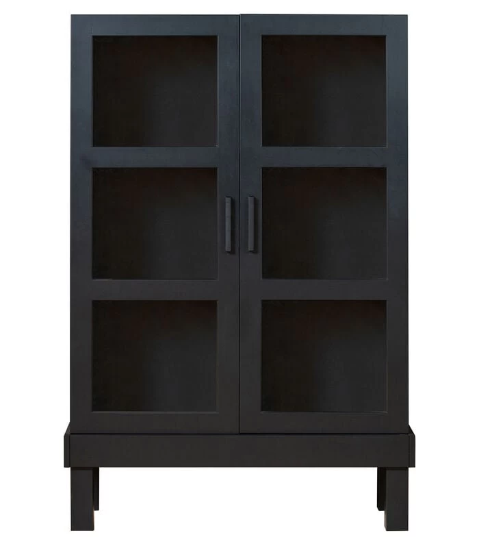Bonk is een eigentijdse, stoere vitrinekast uit de collectie van het Nederlandse merk Whitelabel. Deze vitrinekast is vervaardigd uit grenenhout, FSC gecertificeerd, en heeft een stoere mat zwarte kleur gekregen. Bonk is voorzien van 3 legplanken, waardoor deze kast genoeg ruimte biedt om accessoires te plaatsen. Deze legplanken bevinden zich achter twee deuren, per deur voorzien van 3 glazen ruiten. De deuren zijn voorzien van een stoere, zwarte metalen greep. Door het tijdloze design past deze kast in ieder interieur thuis.