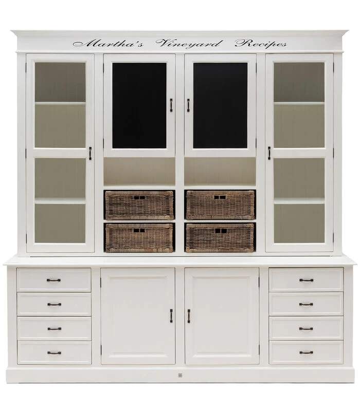 Martha’s Vineyard was het favoriete eiland van de Kennedy’s voor de oostkust van de US. Deze keukenkast heeft volop ruimte voor servies, bestek, schalen. Op het krijtbord schrijft u het dagmenu of de boodschappen die ontbreken in de keukenkastjes