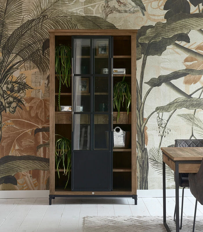 De Hoxton Cabinet is industrieel doch warm door de combinatie van gerecycled essenhout en metaal. De metalen deuren schuiven open met de stoere stangen aan de zijkanten van de deuren. De vele planken in de kast bieden veel opbergruimte, in het midden van de kast ook twee lades voor al uw los slingerende items.