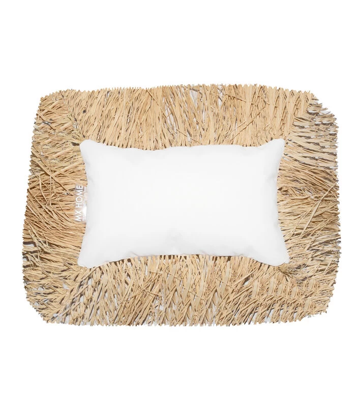 Buitenkussen In Wit Met Raffia-effect En Franjes