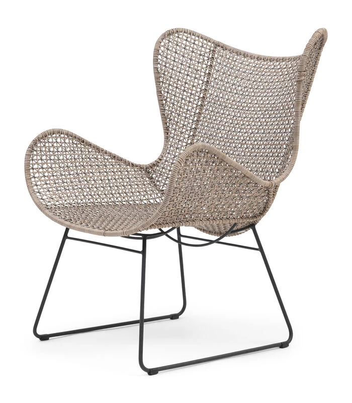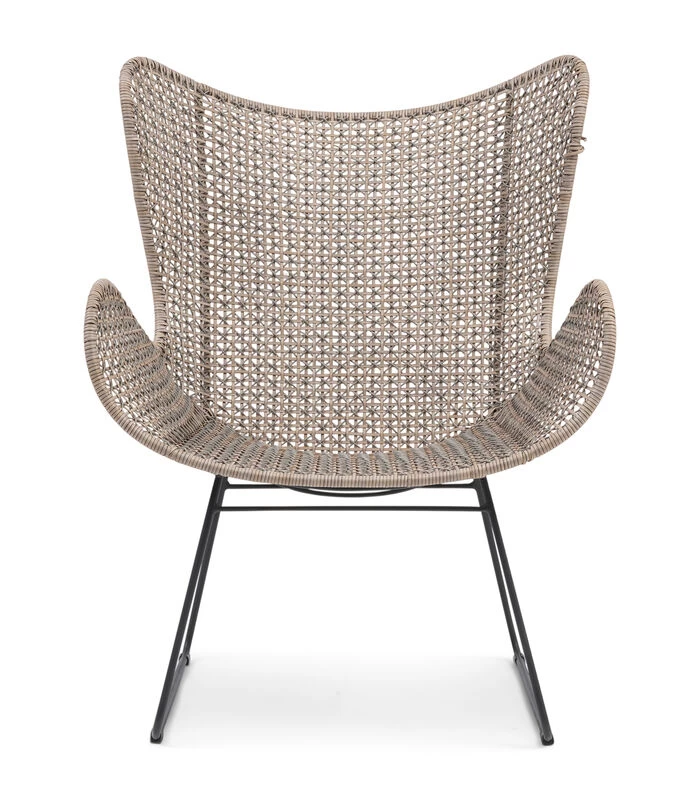 Een heerlijke stoel om buiten van het mooie weer te genieten. Dankzij de sledepoten staat de stoel altijd stabiel, ook al is de grond niet overal even egaal. Het weerbestendige wicker is in een speciaal patroon geweven, waardoor de stoel een luxe uitstraling krijgt. Het hele frame is van zwart metaal.