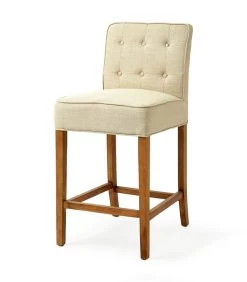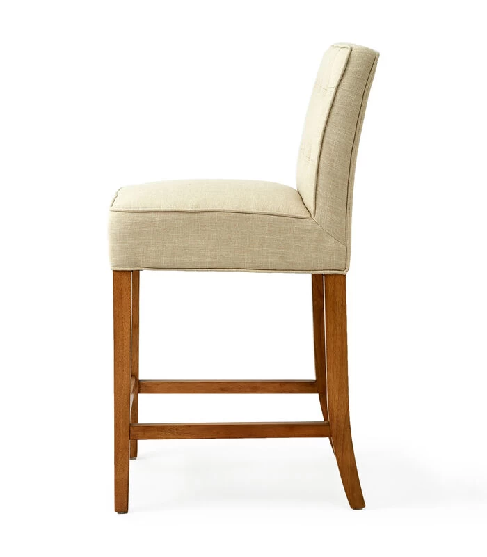 Deze barkruk, gemaakt van linnen met houten poten, komt uit onze Cape Breton–serie. Het is de perfecte aanvulling op een bartafel thuis en geeft tegelijkertijd elegantie en comfort.
