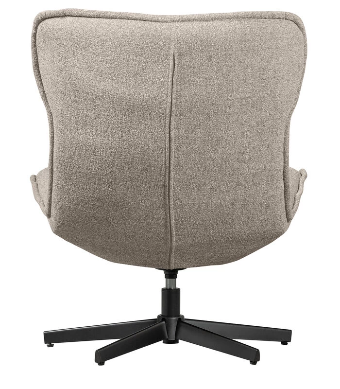 Draaiauteuil Warp is een traditionele sfeermaker in huis! Warp komt uit de collectie van het Nederlandse interieurmerk Basiclabel en is bekleed met een modieuze grove melange stof (100% polyester, Martindale 30.000) in een warme grijstint.