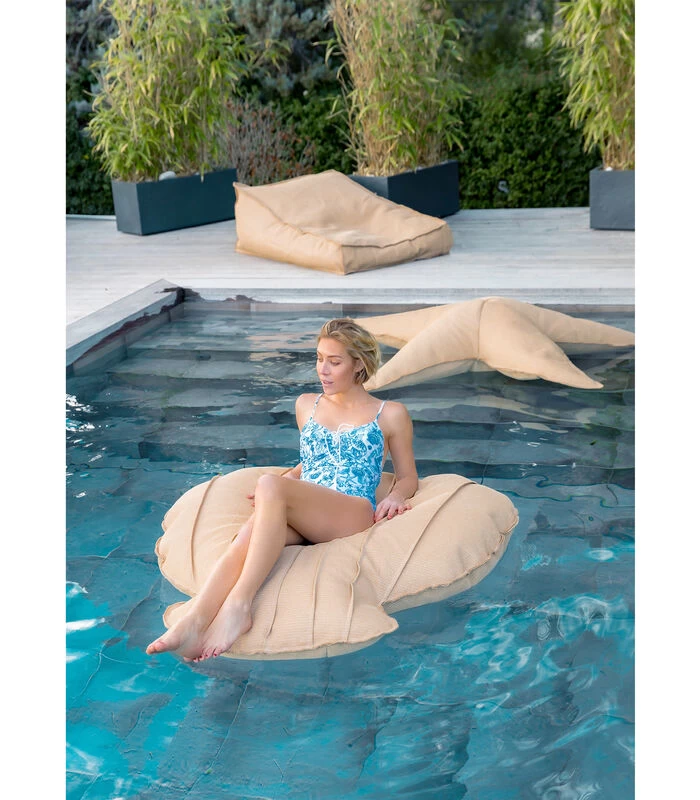 Drijvende XL-buitenpoef Schelpvorm Raffia-effect