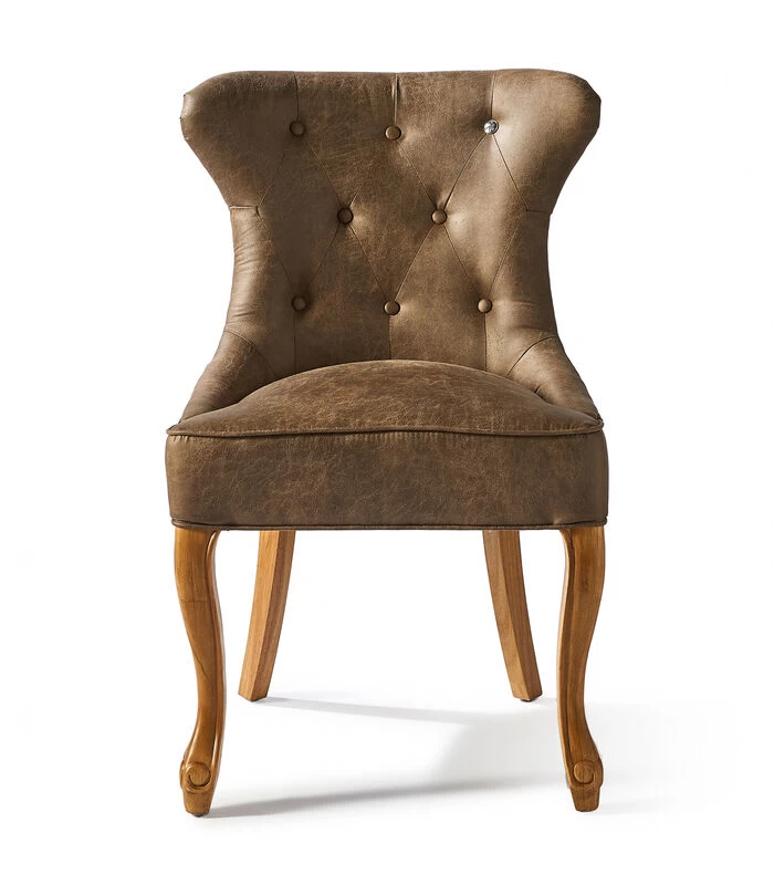 Eetkamerstoel Met Houten Poten, Gecapitonneerde Rugleuning – George Dining Chair – Pellini Leer – Coffee Bruin – 1 Stuk