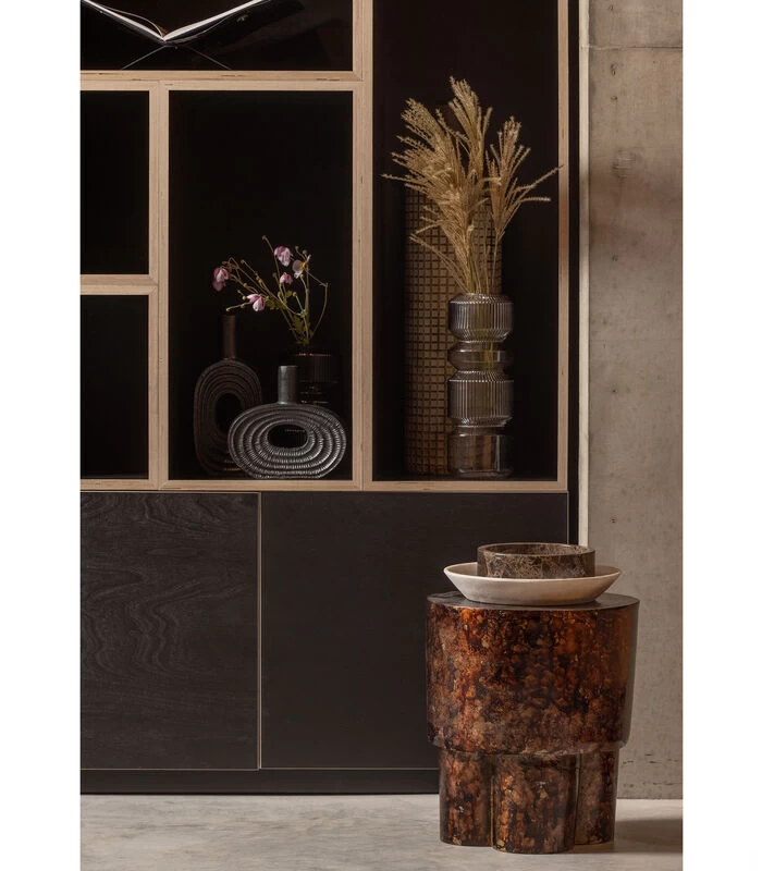 De Ariel bijzettafel, uit de Exclusive collectie van het Nederlandse interieurmerk WOOOD, is een opvallend exemplaar met een zeer unieke coating. De bijzettafel is vervaardigd uit metaal maar heeft een zeer spannende vlamtekening door de zeer ruwe, brass coating. Het gewolkte effect op de donkere bronstint zorgt voor veel diepte. Ariel is een echte eyecatcher!