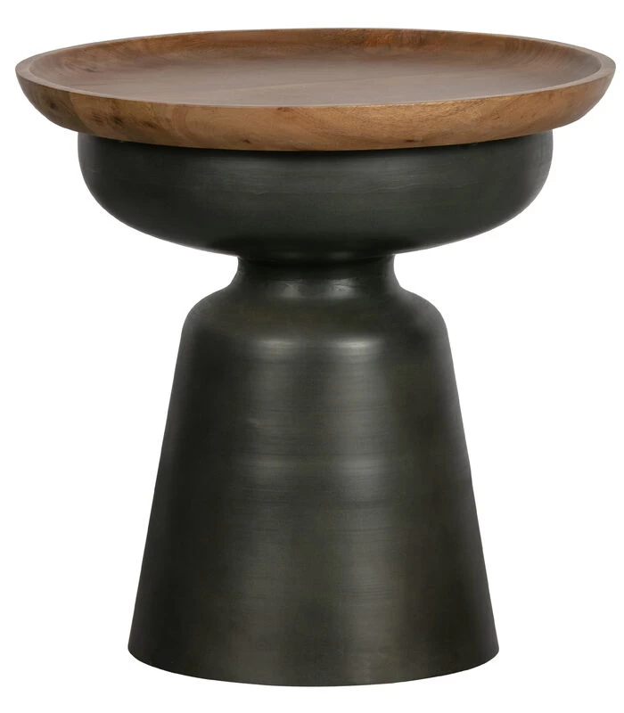Deze ronde bijzettafel komt uit de collectie van het Nederlandse merk WOOOD. De Dana bijzettafel is met haar praktische formaat een tafeltje die je er gemakkelijk bij pakt. De metalen poot heeft een matzwarte coating, met een sterk beschermende werking. Het ronde tafelblad is vervaardigd uit mangohout en heeft een handige opstaande rand, welke mooi is afgerond.