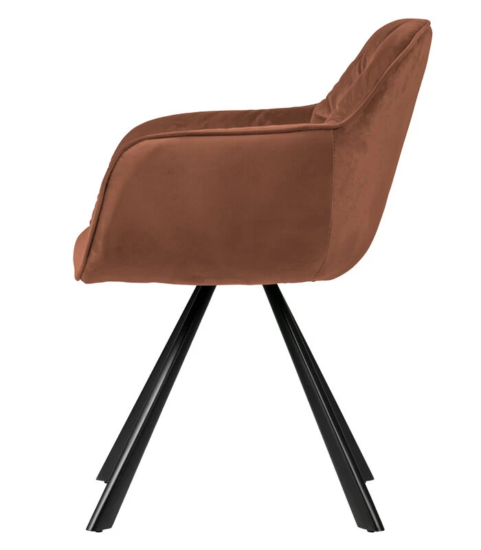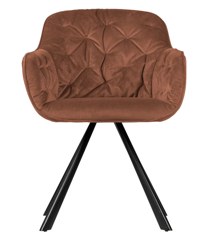 Kleurrijk en chique, dat is deze Elaine eetkamerstoel uit de collectie van het Nederlandse merk WOOOD Exclusive. De zitting van de eetkamerstoel is bekleed met een mooie, stevige velvet stof in een frisse raspberry kleur (100% polyester). De binnenkant van de armleuningen en de rugleuning hebben een gecapitonneerde structuur. De poten zijn gemaakt van metaal en afgewerkt in een zwarte kleur.