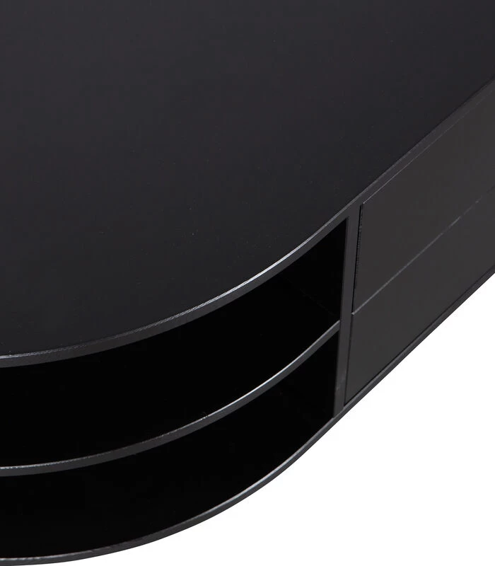 Het Finca tv meubel met rond element is een waar pronkstuk in de woonruimte. De open vakken bieden genoeg ruimte voor het presenteren van jouw mooiste woondecoratie. De twee laden houden nog eens een ruime opbergruimte uit het zicht. De onderrand van het tv meubel laat 7 cm ruimte over aan de voorzijde, hierdoor lijkt het meubel te zweven.