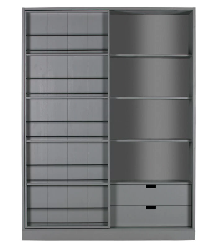 Deze schuifdeurkast heet Swing en is van het merk WOOOD Exclusive. Swing is een fantastische ruimtebesparende opberger met een stoer karakter die lekker opvalt in het interieur. De schuifdeur is ruimtebesparend en ook functioneel want je kunt van alles achter de zwart metalen stangen plaatsen. De schuifdeur kan worden gevuld met bijvoorbeeld tijdschriften, borden of platen. De kast is gemaakt van FSC massief grenen hout dat is geschuurd en afgewerkt in de kleur leem. Het interieur van het linke gedeelte van de kast bestaat uit 5 opbergvakken en het rechtergedeelte heeft 4 opbergvakken met twee gelijke lades. Dit maakt van de Swing schuifdeurkast een heerlijke opberger gecombineerd met de looks van een prachtige en unieke kast. Artikelkenmerken