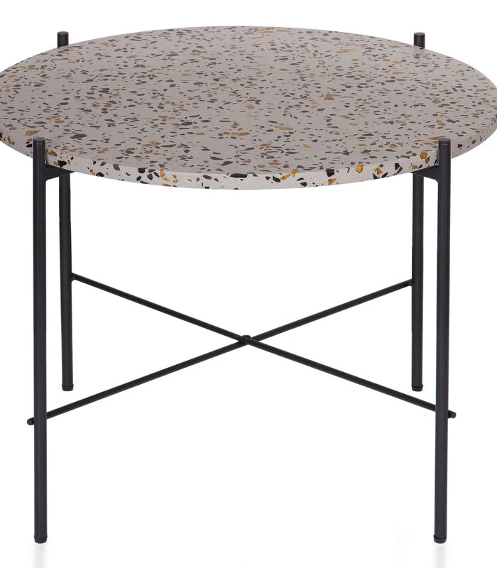 Grijs terrazzo tafelblad met zwart stalen frame