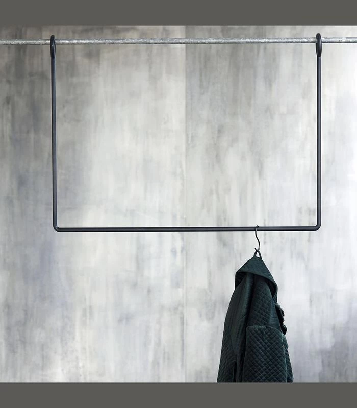 Eenvoudige en ingetogen kapstok van House Doctor met een unieke uitstraling. Het rek is gemaakt van zwart ijzer, dat tussen twee haken in de muur wordt geklemd. Eenvoudige en elegante opbergoplossing voor bovenkleding of kleding.