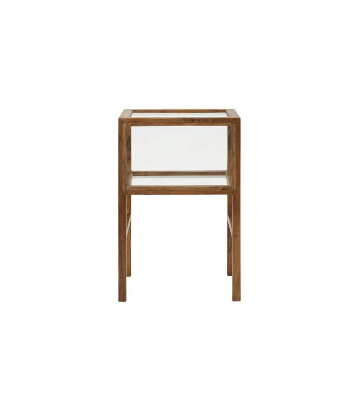 De Montre bijzettafel van House Doctor dient zowel als tafel als vitrine. Dankzij de glazen zijkanten en het glazen blad kun je items mooi etaleren en worden ze onderdeel van je interieur. De bijzettafel is gemaakt van mangohout en heeft haar gouden kleur behouden voor een natuurlijke uitstraling. Hierdoor wordt de structuur van het hout geaccentueerd, wat een prachtig designelement is. Plaats Montre naast je bank of als console in je woonkamer, versierd met een aluminium plantenpot of je favoriete kandelaars.