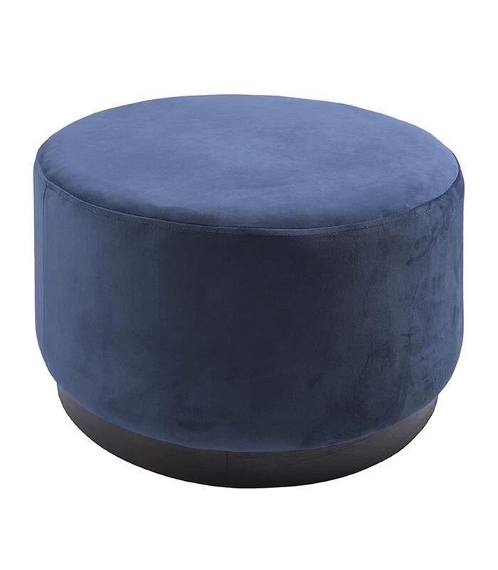 Leitmotiv Poef W. Wood Rim – Velvet Jeans Blauw – Large – 50x30cm