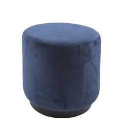 Leitmotiv Poef W. Wood Rim – Velvet Jeans Blauw – Medium – 36x38cm