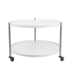 Van kleine tafeltjes kun je niet genoeg hebben. Deze moderne salontafel van Leitmotiv in diverse kleuren heeft, heel handig, twee plankjes én wielen waardoor hij zeer eenvoudig te verplaatsen is. Ga je voor een exemplaar met nikkel of goud als framekleur? En kies je voor groen, zwart, grijs of wit? Moderne salontafel Thrill van Leitmotiv biedt plek voor je tijdschrift, krantje, kopje koffie en schaaltje nootjes! Ook verkrijgbaar als bijzettafel.Productinformatie