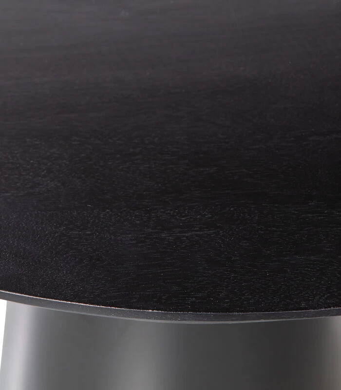 Nena is vervaardigd uit een combinatie van twee sterke materialen. De stevige ronde poot is gemaakt van metaal met een matzwarte poedercoating, zeer eenvoudig in het onderhoud en biedt veel stabiliteit. Het tafelblad is gemaakt van hout met een matzwarte lak, de nerftekeningen zijn duidelijk zichtbaar wat zorgt voor een warme, natuurlijke uitstraling.