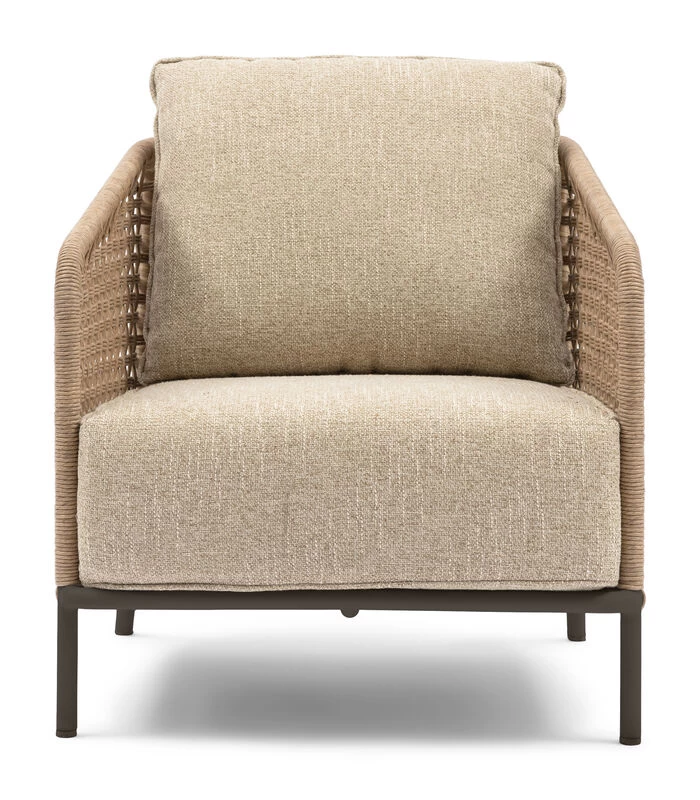 Net zo comfortabel buiten als binnen zitten? Dat kan met deze Sanur Outdoor loungefauteuil. Het frame en de zijkanten hebben een luchtige opengewerkte uitstraling, terwijl de zitting en het rugkussen heerlijk zacht en comfortabel zijn. De fauteuil is gemaakt van weerbestendig materiaal. In deze serie is ook een bank verkrijgbaar