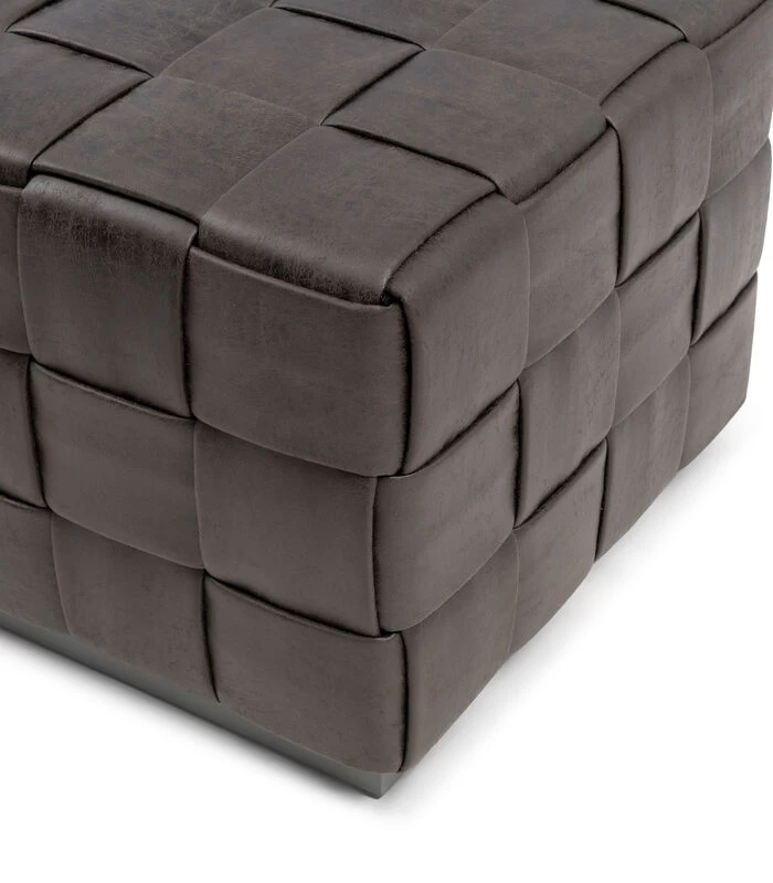 Zachter dan zacht, deze voetenbank van pellini. Dat heerlijke leermateriaal van Enzo Pellini, dun, maar erg stevig. In de kleur espresso, die past vrijwel overal bij. De repen leer zijn in blokmotief gevlochten en het frame is van rubberhout. Een voetenbank die je uitnodigt te ontspannen…