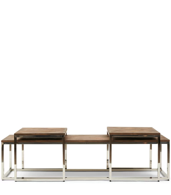 Salontafel Hout – Bushwick Table – Set Van 3 Stuks – Zilver
