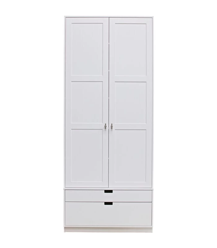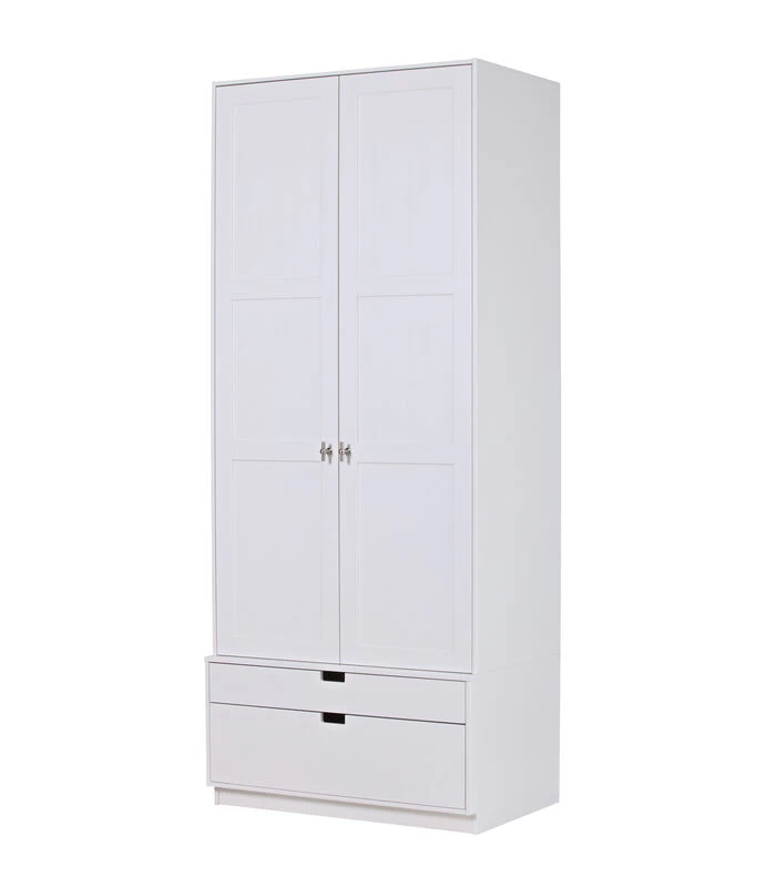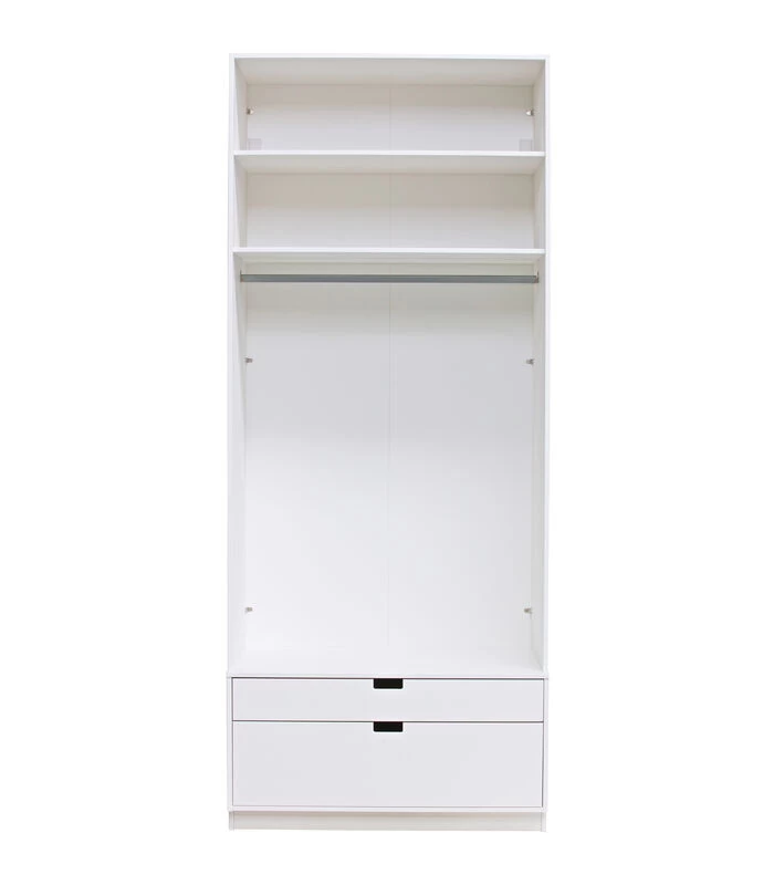 SKIK heeft een luxe, stevige en stijlvolle look. Een moderne en royale kast dat is deze SKIK garderobekast (H 231 x B 95 x D 62 cm). De SKIK kledingkast is extra hoog (231 cm) voorzien van twee deuren met boxindeling. Daaronder bevinden zich twee praktische lades van ongelijke hoogte (H 8,8 cm en H 21,5 cm). De deuren en lades zijn standaard voorzien van softclose.