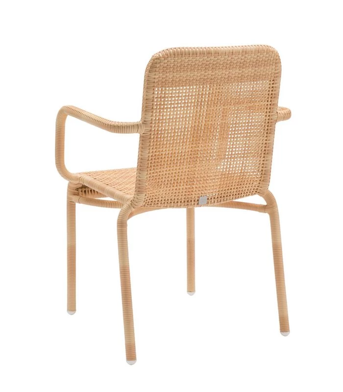 Comfortabel, nonchalant en gemakkelijk om mee te leven, de Tobago buitenstoelen zijn hier geweven met een “”natuurlijke”” gekleurde resin die een rotan vlechtwerk imiteert. Zo geniet u van de look van een natuurlijk materiaal… zonder de nadelen: zeer weinig onderhoud, geen noodzaak om de zetels ’s avonds of in de winter op te bergen, geen kleurverandering door UV–stralen of vochtigheid, enz. Onze tafelfauteuil voelt zich zowel buiten op een terras of in de tuin als binnen in de eetkamer, keuken of serre thuis.Afmetingen: hoogte 84 x breedte 57 x diepte 59, zitting 46 cm, armleuninghoogte 67 cm. Gepoedercoat aluminium frame, HDPE Kunstvezelvlechtwerk. Gemaakt in Indonesië .