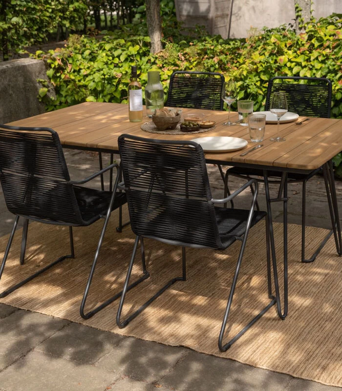 Rope is de laatste jaren erg trendy. De Slimm serie van Exotan is een mooie combinatie van rope, steel en teak FSC. De tuinstoel Slimm heeft een rope zitting. Dit is sterk en sneldrogend. Het frame is van steel. Deze combinatie van hoogwaardige materialen zorgen er voor dat deze stoel onderhoudsarm is.