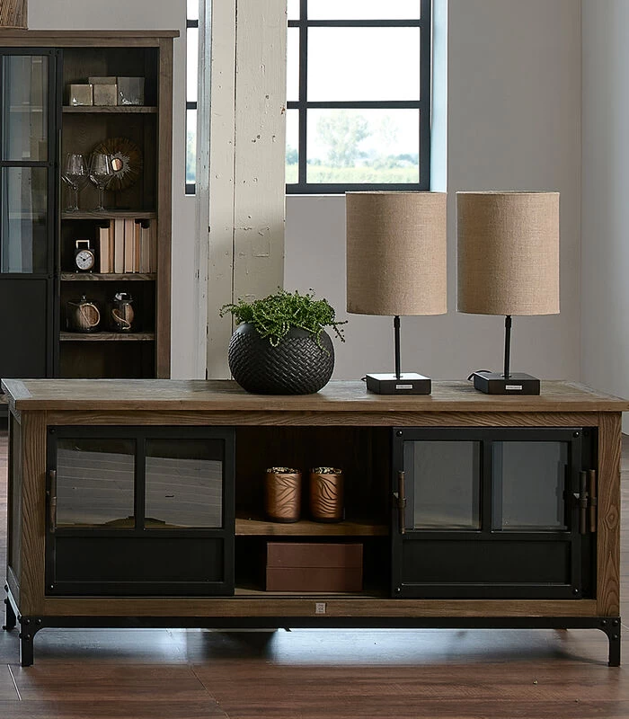 Stoer maar toch passend binnen veel interieurstijlen dat zijn de meubelstukken uit ‘The Hoxton’–lijn. Dit televisiemeubel is gemaakt van een combinatie diverse hergebruikte houtsoorten en zwart metaal. Dit prachtige meubelstuk is een echte eyecatcher in de kamer en tegelijkertijd praktisch omdat u er van alles in kunt opbergen.