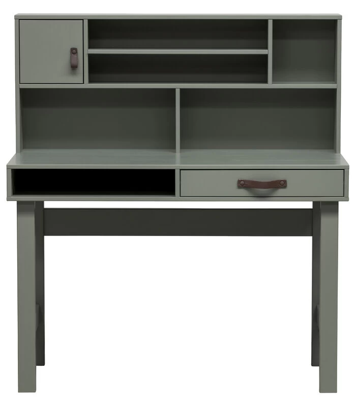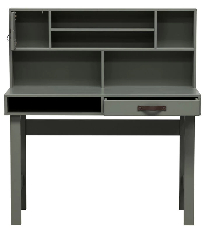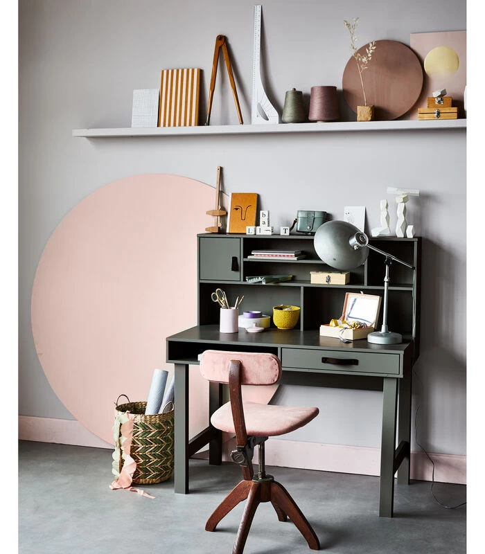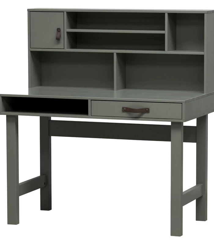 Dit Stage bureau uit de collectie van het Nederlandse merk vtwonen is praktisch, stoer en heeft een speelse uitstraling. Het bureau is gemaakt van massief, FSC gecertificeerd, grenenhout gelakt in een groene soap tint en is voorzien van een achterwand met extra opbergmogelijkheden. Dit zorgt voor een opgeruimd en vrij werkblad.