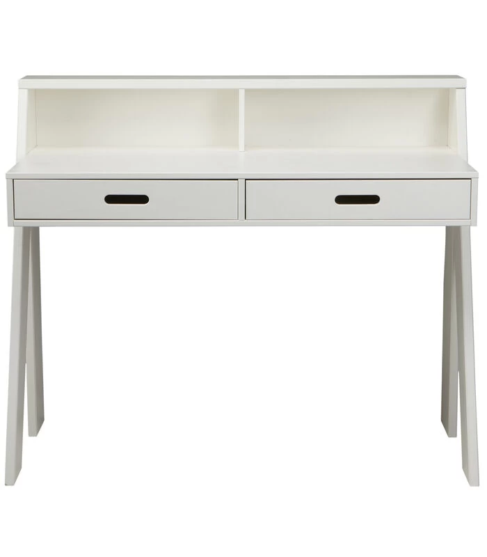Dit frisse, moderne bureau Connect uit de collectie van het Nederlandse merk WOOOD is gemaakt van Massief, FSC gecertificeerd, grenenhout voorzien van een witte afwerking. Het bureau beschikt over een twee lades (hxbxd) 6.5×47.5×40 cm met uitgefreesde en afgeronde handvaten. Handig voor het opbergen van je huiswerk of andere zaken die je liever niet in het zicht hebt liggen.