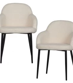 WOOOD Eetkamerstoel Noortje – Teddy – Wit – Set Van 2
