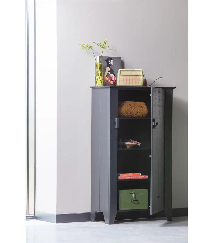 De stoere kast die niet mag ontbreken in een (kinder)kamer met landelijke stijl is deze Gijs boerenkast. Gijs is onderdeel van de WOOOD collectie en is een opvallend item door zijn grof bezaagde grenenhout en matte coating. Achter de deur gaat een zee van opbergruimte schuil, perfect voor kleding, beddengoed of papierwerk.
