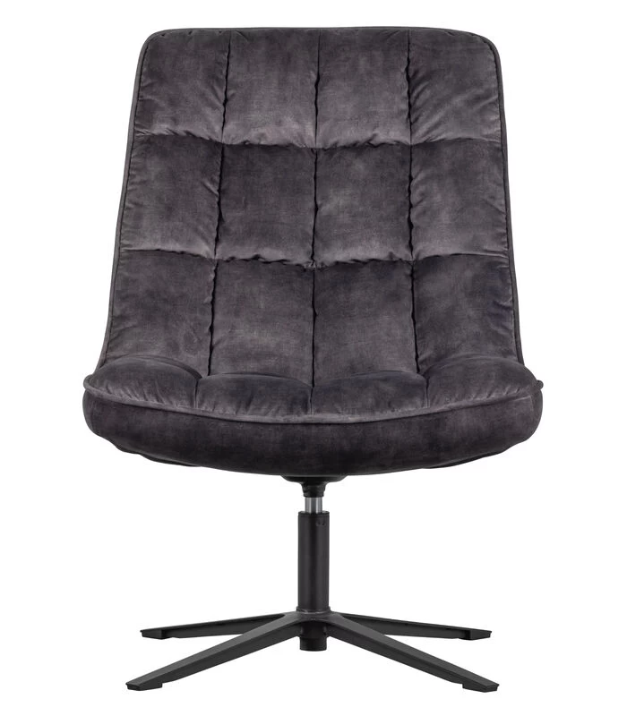 De Job draaifauteuil uit de collectie van het Nederlandse merk WOOOD heeft een stoere uitstraling en is voorzien van zachte organische vormen. De zitting en rugleuning van Job zijn bekleed met een zachte velvet (100% polyester, Martindale 40.000) in warm antraciet. Het onderstel is gemaakt van metaal voorzien van een zwarte poedercoating. Job nodigt uit om eens lekker te relaxen!