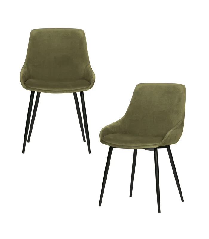WOOOD Selin Eetkamerstoel – Fluweel – Grasgroen – Set Van 2