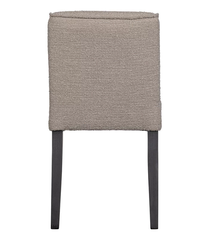 De Tessel Eetkamerstoel 83x45x60 cm (hxbxd) heeft een stoere en moderne uitstraling en komt uit de collectie van het Nederlandse merk WOOOD. De eetkamerstoel is bekleed met een zachte bouclé stof (95% polyester / 5% polyacryl) met een Martindale van 75.000. De zwart gelakte beukenhouten poten in combinatie met de bekleding maken van deze eetkamerstoel een mooie toevoeging aan elke eettafel. De Tessel eetkamerstoel heeft een zithoogte van 49 cm, de zitbreedte is 45 cm en de zitdiepte is 41 cm. De rugleuning is vanaf de zitting 37 cm met een dikte van 10 cm. De zwarte houten poten hebben een hoogte van 44 cm. De poten hebben bovenaan een afmeting van 4×4 cm, ze lopen taps toe tot 3×3 cm onderaan.