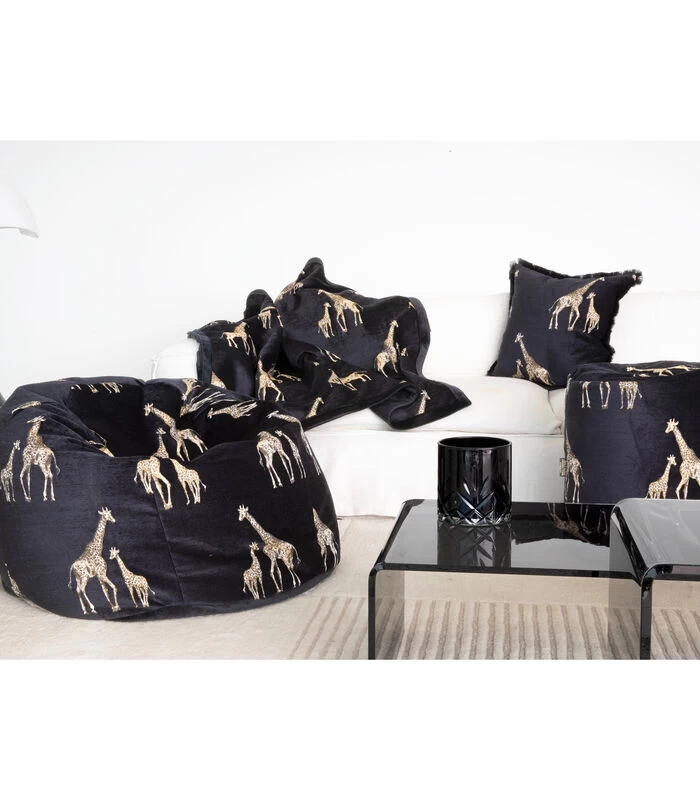 XL Poef Met Goud Geborduurde Giraffen