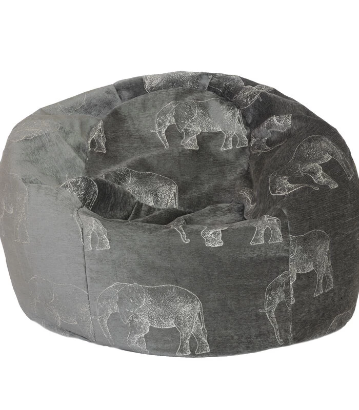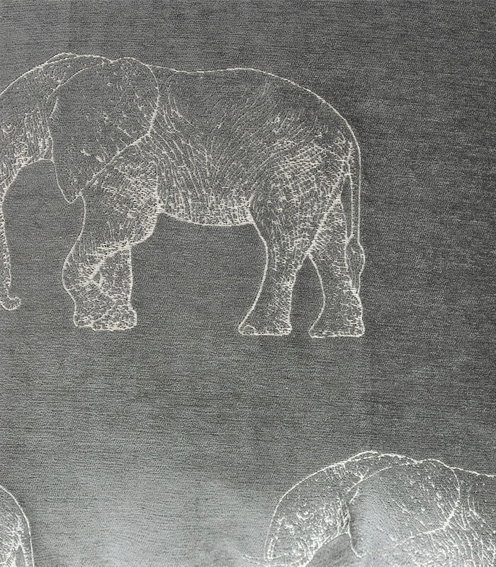 XL Poef Met Grijze Geborduurde Olifanten