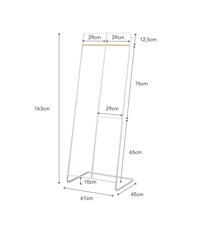 Een extra groot elegant rek om jurken, jassen, overhemden en andere kledingstukken aan op te hangen. Bestaat uit drie ‘vakken’: twee aan de bovenzijde en eentje aan de onderzijde. Deel het rek met uw partner, of alleen voor uzelf. De onderste stang is er speciaal om uw broeken aan te hangen.